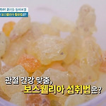 보스웰리아 먹는방법을 알려드릴게요관절 건강 맞춤, 보스웰리아 섭취법은?관절 튼튼 보스웰리아 차끓는 물에 보스웰리아 원물을 넣고 약불로 20분간 끓인다보스웰리아 차에 들어가는 특별한 식재료바로 생강입니다.보스웰리아만 먹으면 밍밍하니까 생강 한 쪽씩 넣어 먹으면향도 좋고 몸에도 좋다고 해서 이렇게 넣어서 먹고 있습니다.생강은 왜 끓일 때 같이 안 끓이고 마지막에 넣은 건가요?그걸 함께 넣고 끓이면 너무 오래 끓이니까 향이 너무 진해져서 마지막에 넣고 있습니다.TIP: 보스웰리아 차에 생강을 더해주면 관절 염증 억제 효과를 높여준다. 보스웰리아는 보통 차로 섭취합니다.원물의 경우, 다양한 활용이 어려워 가루를 활용보스웰리아 가루를 요구르트나 찌개에 넣어 섭취합니다.나물무침이나 도토리묵 양념에 활용하는 보스웰리..
